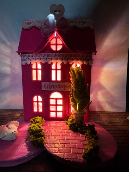 Truffle the mouse loves to read. He even has his own library! This 4" figurine lights up to give a cozy feel to this little scene.